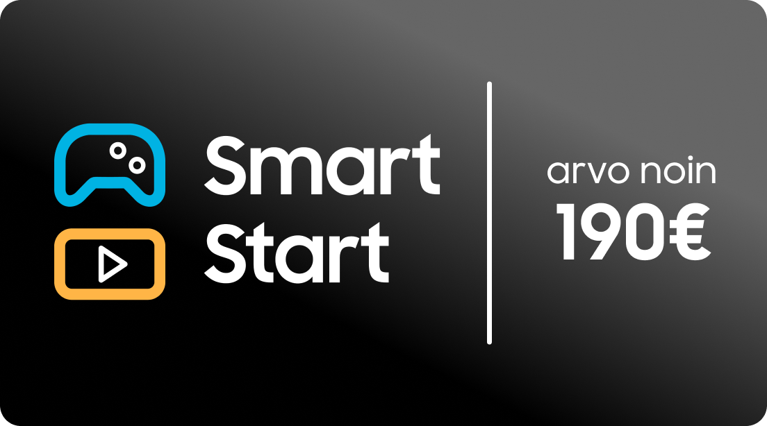 *Voimassa ostettaessa valikoituja projektorimalleja ja valikoituja vuoden 2025 Samsung-televisioita samsung.com-sivuilta sekä valikoiduilta jälleenmyyjiltä 30.4.2025 – 31.03.2026. Rajoituksia sovelletaan. Sisältyvät suoratoistopalvelutarjoukset voivat vaihdella kampanjan aikana. Edellyttää, että asiakas luo tilin kussakin suoratoistopalvelussa. Ehdot: samsung.com/fi/smartstart