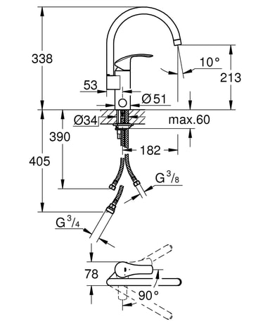 Grohe Eurosmart korkea juoksuputki, apk-venttiili.Tutustu ominaisuuksiin