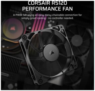 Jäähdytä tietokonettasi tyylikkäästi ja tehokkaasti 120 mm Corsair RS120 -PWM-tuulettimen avulla. Siinä on säädettävä nopeus, magneettinen kupolilaakeri, Corsair AirGuide, daisy-chain-ketjutusrakenne ja kyky toimia jäähdyttimen tuulettimena.Tutustu ominaisuuksiin