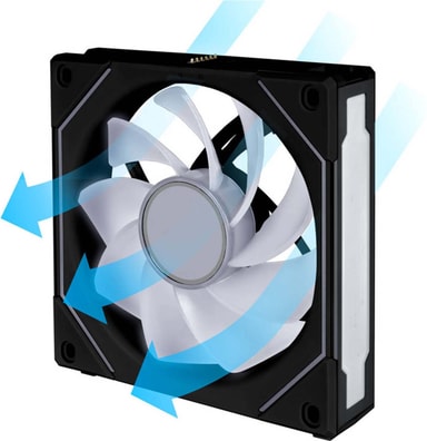 Lian Li UNI FAN SL INF Reverse 120 mm Infinity RGB PWM -tuulettimen enimmäiskierrosnopeus on 2100 RPM, ja siinä on 40 kirkasta RGB LED -valoa. Käänteisillä lavoilla varustetussa tuulettimessa on myös magneettinen Fluid Dynamic Bearing -laakerointi.Tutustu ominaisuuksiin
