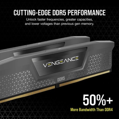 Corsair Vengeance DDR5 RAM -muisti tarjoaa reagoivan suorituskyvyn 5200 MT/s nopeudella, CL40-ajoituksella, Intel XMP- ja AMD EXPO -asetuksilla ja 1,25 V jännitteellä. Se on helppo päivitys sujuvampaan moniajoon ja nopeampiin latausaikoihin.Tutustu ominaisuuksiin