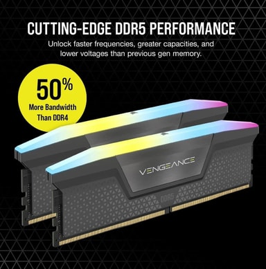 32 GB Corsair Vengeance RGB DDR5 RAM -muistissa on Intel XMP- ja AMD EXPO -profiilit, kestävä alumiinijäähdytyselementti ja reaaliaikainen hallinta Corsair iCUE -ohjelmiston avulla, jotka takaavat optimaalisen suorituskyvyn ja yhteensopivuuden.Tutustu ominaisuuksiin