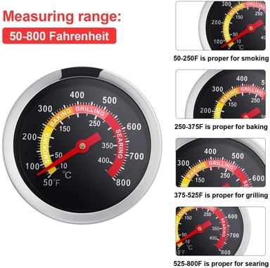 Käyttäjäystävällinen ja helppo asentaa: Analoginen paistolämpömittari on helppolukuinen ja helppo asentaa, sekä ruuvatessasi lämpömittaria yhteen että laittaessasi sen grilliin tai uuniin.