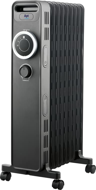 Apt-öljypatteri tarjoaa tasaista, hiljaista lämpöä 9 rivalla. Siinä on 3 lämpötila-asetusta, säädettävä termostaatti, kaatumis- ja ylikuumenemissuoja sekä johdon säilytyspaikka turvalliseen ja käytännölliseen käyttöön.Tutustu ominaisuuksiin