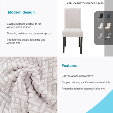 Joustava tuolinpäällinen takaa nopean kiristyksen ja hyvän pidon, samalla kun vanhatkin tuolit näyttävät uusilta. Samalla se suojaa pölyltä, tahroilta, naarmuilta ja haalistumiselta ajan myötä.