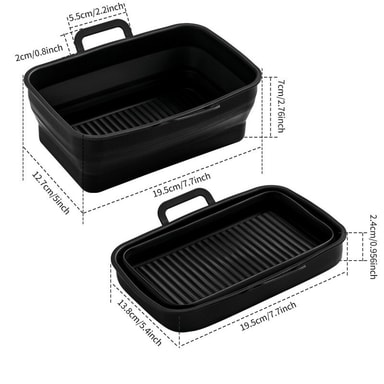 Kulho sopii täydellisesti Ninja 201410 -ilmakeittimeen. Sopii tarkasti rasvakeittimeen ja estää tahmeiden ja palaneiden ruokajäämien muodostumisen Air Fryeriin. Säiliö on uudelleenkäytettävä ja konepesun kestävä. Korotettu reuna pitää ruoan paikoillaan ja kerää murut ja ylimääräisen rasvan. Taitettava muotoilu, joten se vie vähemmän tilaa, kun sitä ei käytetä.