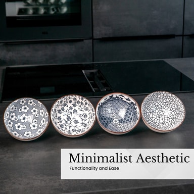 Ainutlaatuinen moderni sininen ja valkoinen muotoilu tekee näistä keittokulhoista todellisen katseenvangitsijan kaikilla pöydällä.
