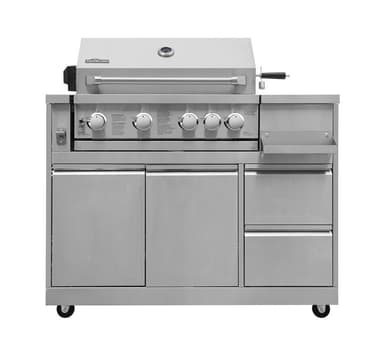 Myoutdoorkitchen - Inox Range - Moduuli kaasugrillilläTukeva kaasugrilli ruostumatonta terästä. Vapaasti seisovassa grillissä on 4 erittäin tehokasta kaasupoltinta ja 1 infrapunapoltin, joiden lämpötilaa säädetään 5 säätönupin avulla.Tutustu ominaisuuksiin