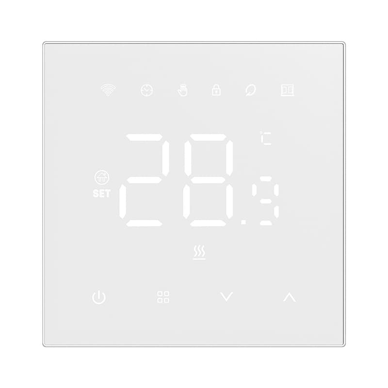 Edistykselliset ominaisuudet: Varustettu edistyksellisillä ominaisuuksilla, kuten säädettävä taustavalon kirkkaus, pakkassuoja ja lapsilukko, tämä termostaatti tarjoaa turvallisen ja käyttäjäystävällisen kokemuksen. Säädettävän taustavalon avulla voit mukauttaa näytön mieltymystesi mukaan, kun taas pakkassuoja estää putkien jäätymisen kylmällä säällä. Lapsilukko varmistaa, että lapset eivät vahingossa muuta asetuksiasi, mikä antaa mielenrauhan. Termostaatti tarjoaa lämpötilan säätöalueen 5-50°C ja tarkkuuden 1°C.