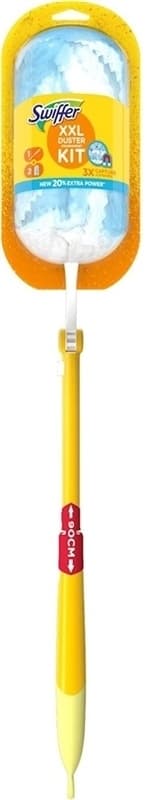 Swiffer Duster XXL fångar upp och låser in damm, hår, och allergiframkallande ämnen från dammkvalster, oavsett om du behöver nå höga eller låga ytor. Swiffer fångar även hår från katter och hundar tack vare de tusentals fluffiga fibrerna med en lätt beläggning. Swiffer Duster XXL går att förlänga upp till 90 cm och rengör mer noggrant än andra dammvippor, eftersom du når längre och även i trånga utrymmen. Teleskopskaftet på dammvippan har ett anpassningsbart huvud som kan låsas i fyra olika lägen för att rengöra vinklade ytor som hyllor, golvlister och hörn. Den når till och med de mest svåråtkomliga ställena som element, persienner, instrumentbrädor i bilar eller elapparater. Refiller med unika fibrer