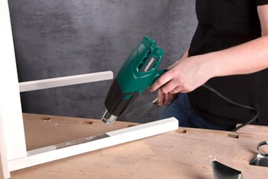 Diese Heißluftpistole wird mit 3 verschiedenen Düsen geliefert. Verwenden Sie die Breitstrahldüse, um Farbe über große Flächen zu entfernen. Die reduzierte Düse erzeugt einen 1-Punkt-Wärmeradius für präzises Arbeiten in Ecken. Eine Glasschutzdüse lenkt den Wärmestrom ab. Das ist für den Schutz von Glasscheiben beim Entfernen von Farbe oder Versiegelung von einem Fensterrahmen sinnvoll.