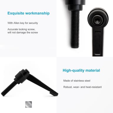 Intirilife säädettävät kiristysvivut ja kiristysmutterit on valmistettu sinkitystä teräksestä mustana.