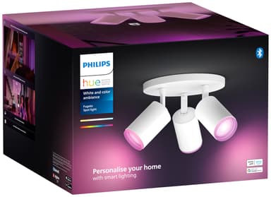 Valaise mikä tahansa huone Philips Hue Fugato -spottivalolla. Kolmen 4,2 W spottipään, Zigbee-yhteyden, GU10-kannan ja 16 miljoonan värin avulla voit luoda helposti ihanteellisen valaistuksen mihin tahansa tunnelmaan tai tilaisuuteen.Tutustu ominaisuuksiin