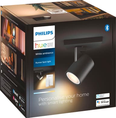 4,2 W Philips Hue Runner -spottivalon joustava pää antaa valoa lämpimistä viileisiin sävyihin. Säädä kirkkautta Bluetooth-yhetyden tai Hue Dimmer -himmenninkytkimen avulla ja laajenna sen ominaisuuksia yhdistämällä se Hue Bridge -siltaan.Tutustu ominaisuuksiin
