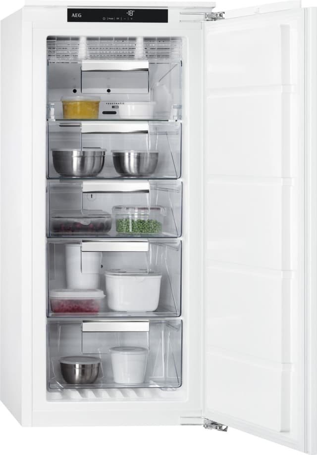 Kalusteisiin integroitava AEG-pakastin tarjoaa jopa 120 litraa säilytystilaa. Siinä on NoFrost-teknologia, Frostmatic-toiminto ja intuitiivinen elektroninen kosketusohjaus.Tutustu ominaisuuksiin