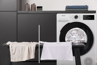 Suurten lakanoiden ja muiden suurten vuodevaatteiden kuivaaminen kuivausrummussa voi aiheuttaa niiden kietoutumisen toisiinsa. Näin ei käy Hisense-kuivausrummuissa, joissa on Twin Flow -ominaisuus. Käyttämällä erityistä tekniikkaa, joka sovittaa kaksisuuntaisen ilmavirran rummun pyörimiseen, voit aina odottaa täydellistä kuivaustulosta, riippumatta kuivattavien tekstiilien koosta. Kaikki kuivataan tasaisesti ilman, että vaatteet sotkeutuvat toisiinsa.
