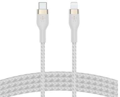 Belkin USB-C - Lightning punottu silikonikaapeli 3 m (valkoinen)