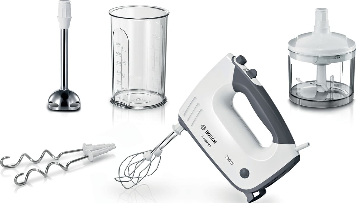 MFQ37480-käsisekoitin: Kevyt voimanpesä, jossa on 750 W, 5 nopeutta ja ergonominen muotoilu vaivattomaan sekoittamiseen ja vaivaamiseen.Tutustu ominaisuuksiin