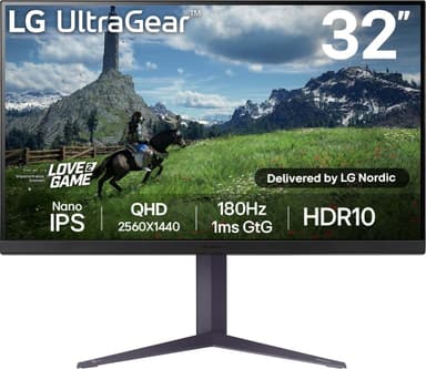 31,5" LG UltraGear 32GS85Q -pelinäyttö tarjoaa tarkan ja värikkään QHD Nano IPS -paneelin 98 % DCI-P3-väriavaruuden kattavuudella. Nauti huikean sujuvasta liikkeestä 180 Hz virkistystaajuuden ja 1 ms vasteajan ansiosta.Tutustu ominaisuuksiin