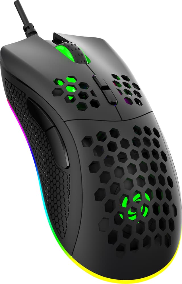 NOS M-600 V2 -pelihiirellä pääset tulostaulujen kärkeen. Hiiressä on 7200 DPI tarkuussensori sekä 7 näppäintä, jotka voit ohjelmoida tarpeen mukaan. Hiiren liikuttelu on vaivatonta 69 g kevyen kennorakenteen ansiosta, ja RGB-valaistuksen voit muokata tyyliisi sopivaksi.