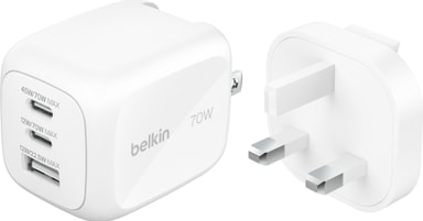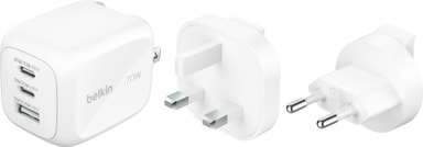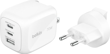Kolmiporttinen 70 W Belkin-seinälaturi tarjoaa nopean latauksen eri laitteille, yhteensopivuus UK/EU/US-pistokkeiden kanssa maailmanlaajuisesti, luotettavan toiminnan ja useita turvaominaisuuksia varmistaen nopean virransaannin matkoillesi.Tutustu ominaisuuksiin