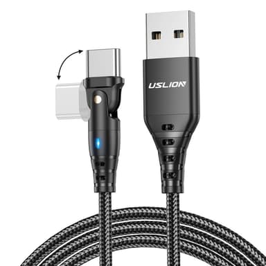 • USB-A - USB-C -latauskaapeli 1 m, 180 astetta kääntyvä kulmapää, 3A