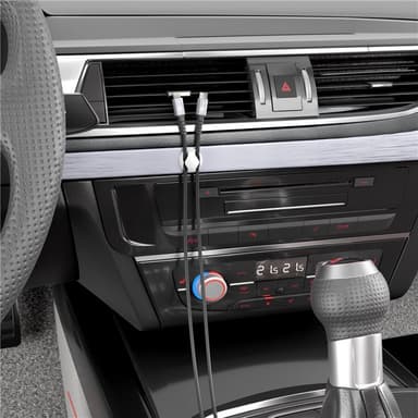 Tämä joustava kaapeliohjain kiinnittää kaapelit kädensijalle ja estää latauskaapeleiden tai muiden USB-liitäntöjen liukumisen pöydän taakse ja alle. Se soveltuu erinomaisesti myös kaapelien reitittämiseen pöydän alle.