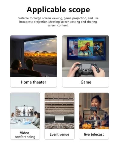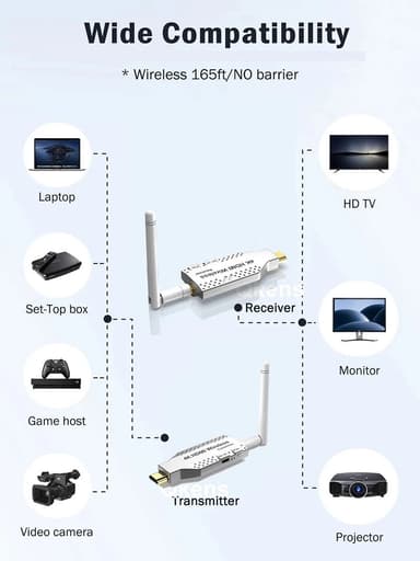 Tämä tuote on langaton HDMI-laajennin, joka mahdollistaa videon ja äänen siirron jopa 4K-tarkkuudella tietokoneelta, kameralta, pelikonsolilta tai muulta HDMI-laitteelta televisioon, näyttöön tai projektoriin – täysin ilman kaapeleita. Jopa 50 metrin kantaman, 5G-nopeuden tuen ja ulkoisen antennin ansiosta tämä on tehokas ja kätevä ratkaisu kotiviihteeseen, konferensseihin, luokkahuoneisiin ja ulkokäyttöön.