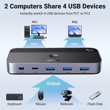 Ugreen USB 3.0 kytkin 2-in-4 kytkin + 2xUSB-kaapeliTutustu ominaisuuksiin