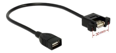 DeLOCK USB 2.0-kaapeli paneeliasennukseen, 2xUSB typ A naaras, 0,25m, musta
