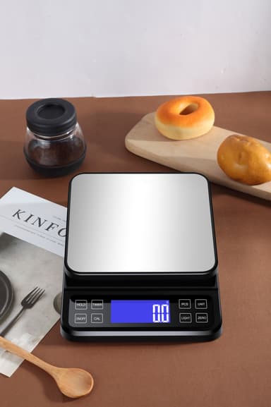 Tarkkuusmittaukset: Digitaalinen vaakamme takaa tarkat mittaukset 0,1 g:n tarkkuudella, joten voit punnita kohteita luotettavasti eri tarkoituksiin, kuten ruoanlaittoon, leivontaan tai annosten hallintaan.