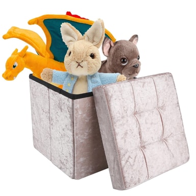 SUUNNITTELU: Tämän käytännöllisen kokoontaitettavan laatikon/jakkaran ulkopuolelta tyylikäs samettipäällinen ja sisäpuolella pehmeä kangas tekevät siitä erittäin tyylikkään ja taatusti katseenvangitsijan!