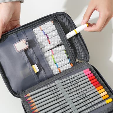 Suuri kapasiteetti: Tässä penaalikotelossa on tilava sisäosa, johon mahtuu kyniä, pyyhekumia, teippiä ja jopa pieniä asiakirjoja. Sen monikerroksinen rakenne varmistaa tehokkaan järjestelyn ja pitää kaikki tärkeät tavarasi helposti käden ulottuvilla.