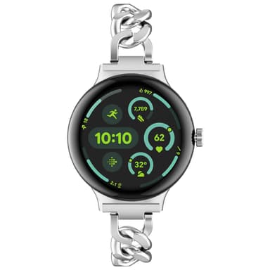 Paranna Google Pixel Watch 1/2/3 -kelloasi tällä tyylikkäällä hopeanvärisellä ruostumattomasta teräksestä valmistetulla rannekkeella. Ensiluokkaisista materiaaleista valmistettu ranneke tarjoaa sekä eleganssia että varman ja säädettävän istuvuuden...Tutustu ominaisuuksiin
