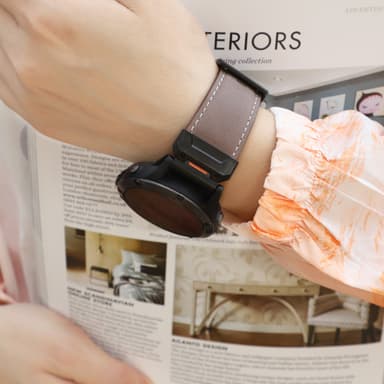 Mukava ja hengittävä: Mukavuutta ajatellen suunnitellun rannekkeen alapinta on valmistettu pehmeästä ja hengittävästä materiaalista, joka estää hikoilua ja ärsytystä myös pitkäaikaisessa käytössä. Sileä nahkainen ulkopinta tarjoaa myös miellyttävän tunteen ihoa vasten.