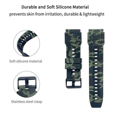 Garmin Fenix® 7/7 Pro / 6/5 vaihtoranneke 22mm säädettävä silikoniranneke - NaamiointiRannehihna on valmistettu silikonimateriaalista, kulutusta kestävä, pehmeä ja mukava käyttääErikoisprintti/kuviosuunnittelu, urheilullinen ja tyylikäsUseita reikiäTutustu ominaisuuksiin