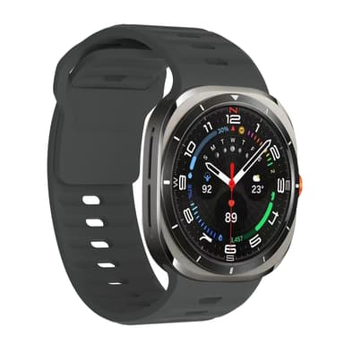 Paranna Samsung Galaxy Watch 7 Ultra -kelloasi tällä tyylikkäällä ja mukavalla silikonirannekkeella. Siinä on turvallinen solkilukko, useita säätöreikiä ja helppo asennus nopeasti irrotettavien jousijalkojen ansiosta.Tutustu ominaisuuksiin