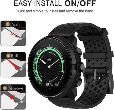 Urheilullinen kellon ranneke Suunto- ja Fossil-kelloille. Rannekoru on valmistettu vedenpitävästä, pehmeästä ja joustavasta silikonista, joka on sekä kestävä että mukava. Ruostumattomasta teräksestä valmistettu solki helpottaa hihnan pituuden säät...Tutustu ominaisuuksiin