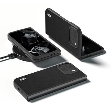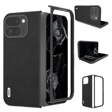 ABEEL Google Pixel 9 Pro Fold Genuine Leather Suojakuori - Musta