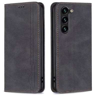 BINFEN COLOR BF Leather Series-5 Samsung Galaxy S23+ (Plus) RFID-estävä lompakkopuhelinkotelo 08 Piilotettu magneettinen absorptio Putoamista estävä PU-nahkainen jalustan foliokansi - musta Tekstu roidusta PU-nahasta ja TPU-materiaalista valmistettuTutustu ominaisuuksiin