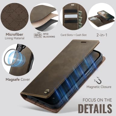 CaseMe iPhone 17 C49 Irrotettava Magneettinen Lompakkokotelo - Tummanruskea