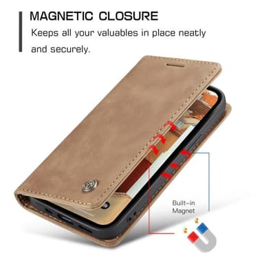CASEME 013 -sarjan lompakkotoiminto PU-nahka+TPU-matkapuhelimen kuori Automaattisesti imeytyvä magneettinen sulkukotelo iPhone 14 Plus:lle - vaaleanruskea Premium PU-nahka ja pehmeä TPU-sisäkotelo tarjoaa herkän kä den tuntuisen lompakon muotoilu: 2Tutustu ominaisuuksiin