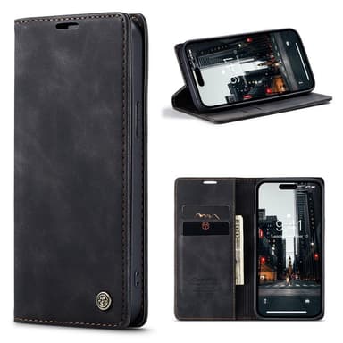 CASEME Retro lompakkokotelo iPhone 15 Prolle - Musta