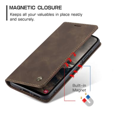 CASEME 013 -sarja Samsung Galaxy A17 5G:lle Suojakuori Seisontatelineellä Magneettinen PU-nahkainen Puhelinkotelo - CoffeeTämä CASEME-kotelo on yksinkertaisen retrotyylinen ja käyttäjäystävällisen otteen omaava rakenne.Tutustu ominaisuuksiin