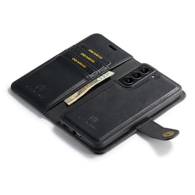 Nahkalompakkokotelo, jossa on magneettisesti irrotettava sisäkuori.