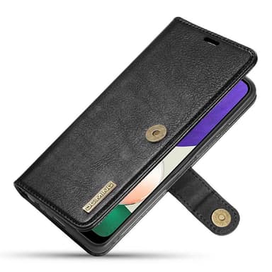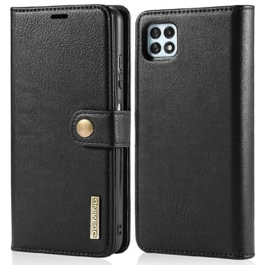 o Samsung Galaxy A22 5G:lle (EU-versio) - musta Tässä kotelossa on 2-in-1-malli, jossa on halkaistu nahkainen lompakkokuori ja irrotettava nahkapäällysteinen PC-takakuori, joka voidaan kiinnittää yhteen magnetismin avulla. Laadukkaat materiaalit ja hieno ammattitaito takaavat tyylikkään ilmeen ja mukavan käden tunteen.