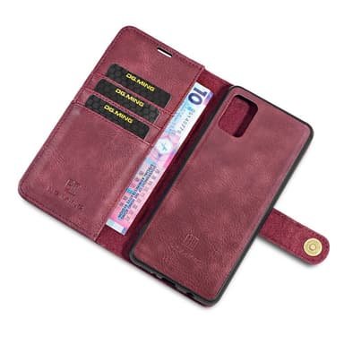 ossa on 2-in-1-muotoilu, jossa on halkaistu nahkainen lompakkokuori ja irrotettava nahkapäällysteinen muovinen takakuori, joka voidaan kiinnittää yhteen magnetismin avulla. Laadukkaat materiaalit ja hieno ammattitaito takaavat tyylikkään ilmeen ja mukavan käden tun teen.