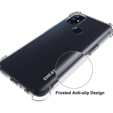 ENKAY Iskunkestävä kirkas TPU-puhelinkotelo Liukumaton suoja OnePlus Nord N10 5G: lle Valmistettu laadukkaasta TPU-materiaalista, pehmeä, joustava, erittäin ohut ja kestävä käytettäväksi Korotettu huuli optimaaliseen linssisuojaan Himmeä liukumaton kTutustu ominaisuuksiin