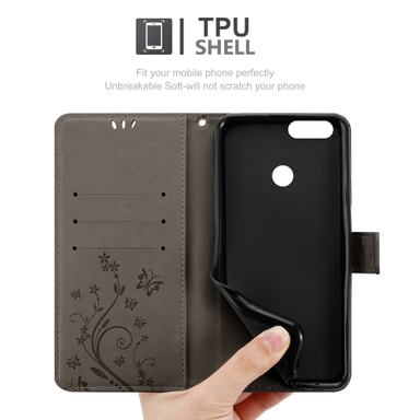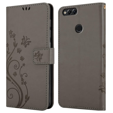 Honor 7X Suojakuori Lompakkokotelo Kukka (harmaa)