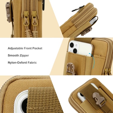 Cadorabon taktinen matkapuhelinkassi maastokuvassa sopii erinomaisesti ulkoilijoille. Se on 185 mm korkea ja 125 mm leveä, ja siinä on tilaa jopa 6,7 tuuman älypuhelimille. Se on ihanteellinen patikointiin, retkeilyyn, lenkkeilyyn ja muihin ulkoilma-aktiviteetteihin, ja se pitää tärkeät tavarasi turvassa ja käden ulottuvilla.